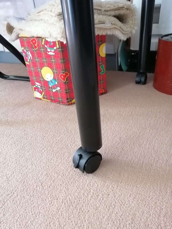 使う人数によって、広げたりコンパクトにしたりも可能で、キャスターもつけてあってコロコロとテーブルを移動させることができるのですが・・・・