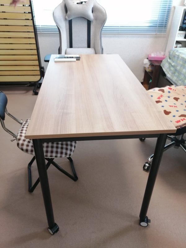 ネットで探してみると、ピッタリな机があるじゃないですか。パソコンテーブルですが、キャスター付きの安定感のある机。ちょうどいい大きさです。